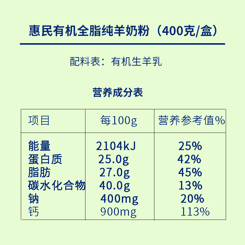 yl23455永利有机全脂纯羊奶粉400克/盒